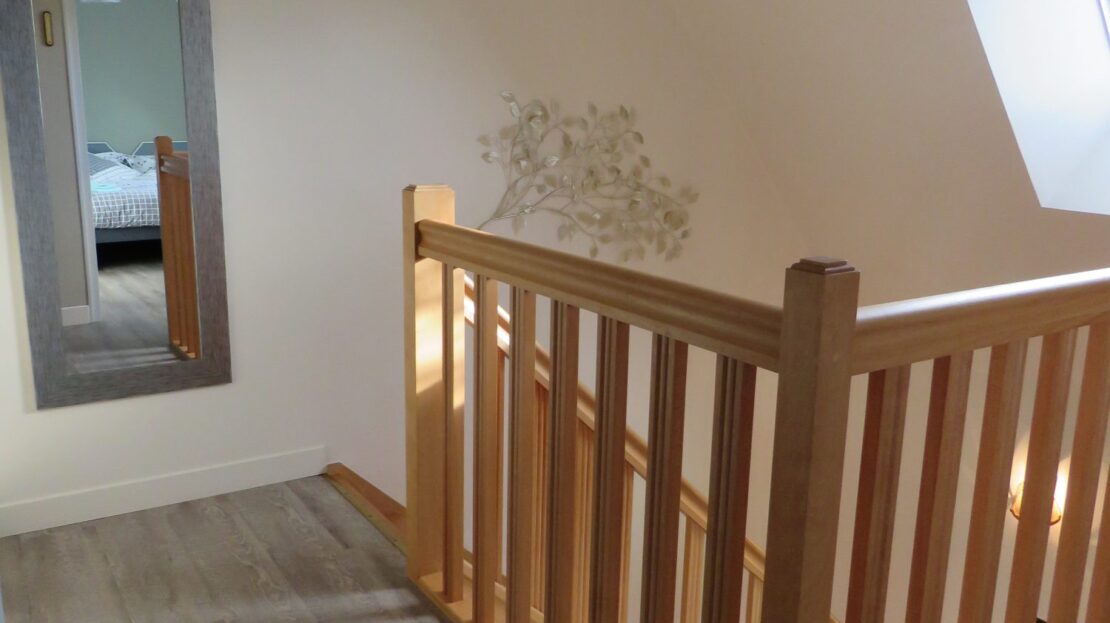 Au 1 er étage: un palier desservant 2 chambres, une salle d’eau avec WC.