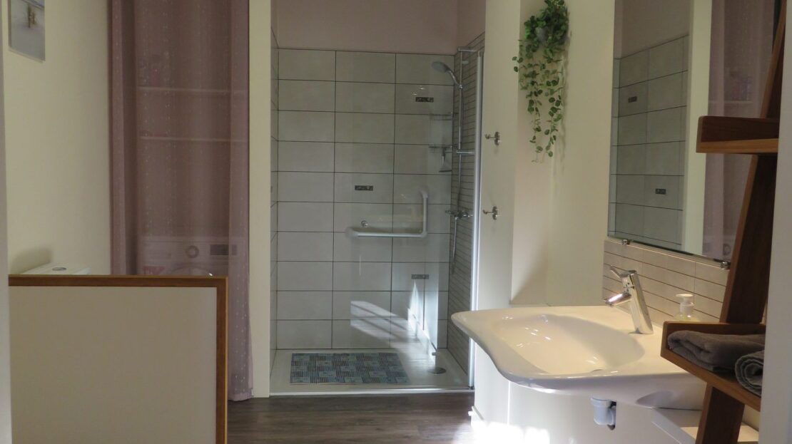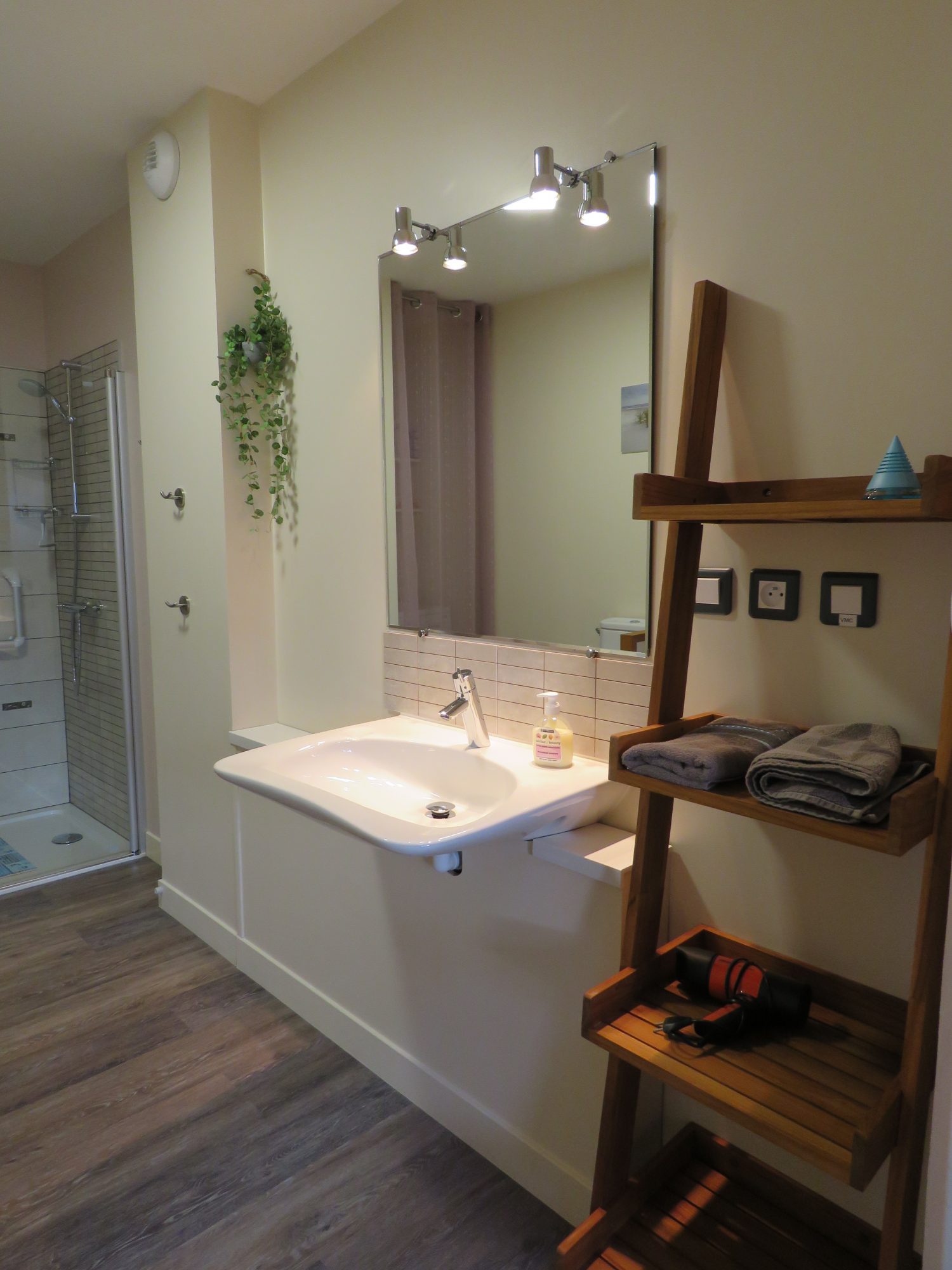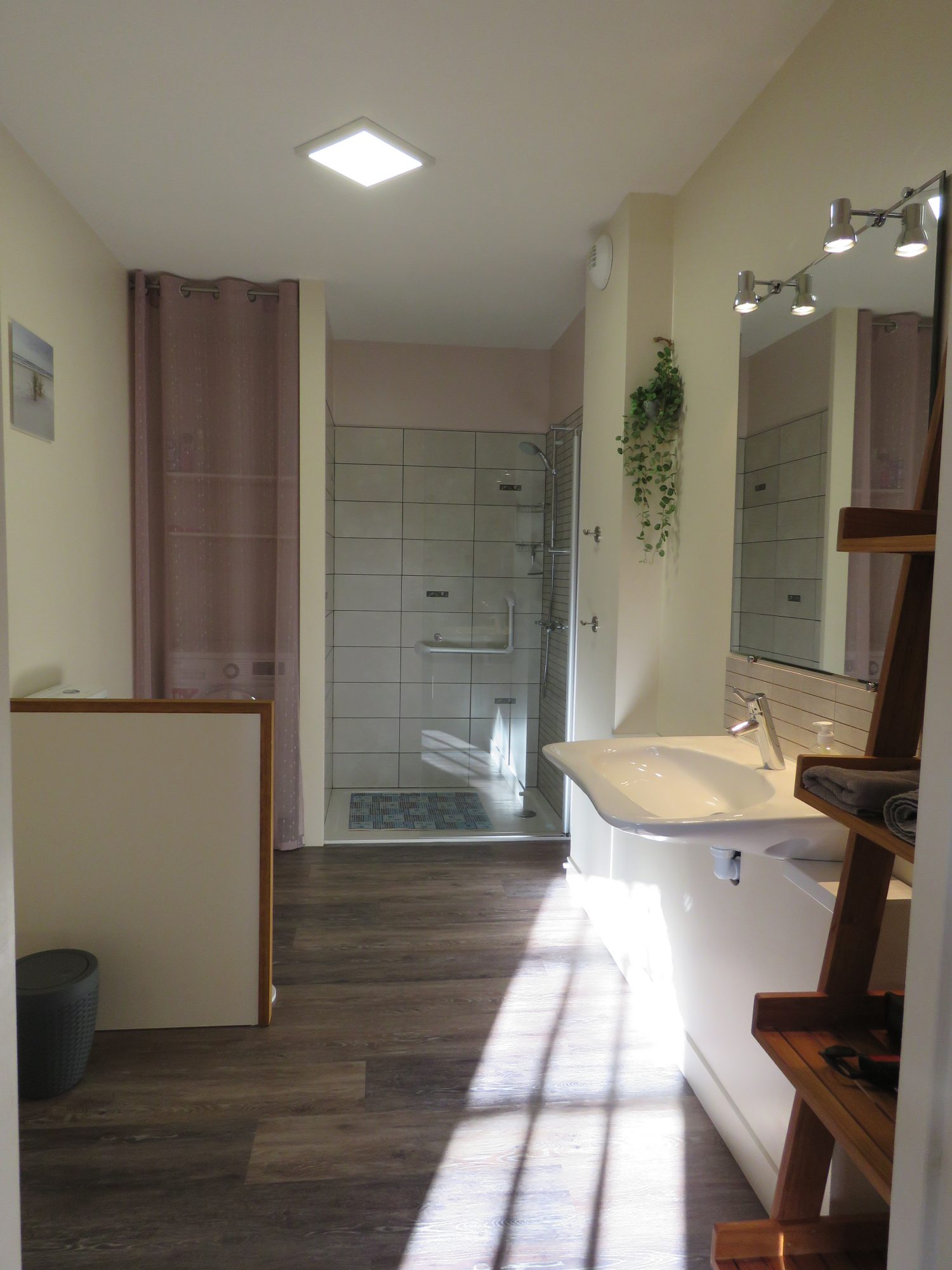Un grand séjour-salon sur cuisine ouverte équipée, une salle d’eau avec WC, une chambre en rez de chaussée.