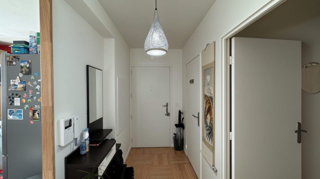 Situé au 1er étage d’une résidence récente, équipée d’un ascenseur, local vélo, local collectif par étage, stationnement sous-terrain individuel.