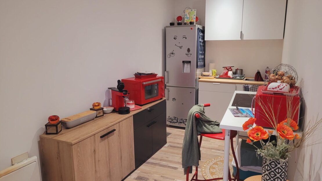 Il se compose d’un coin cuisine, séjour, salle d’eau avec wc. Possibilité de mettre un salon de jardin en extérieur. Loyer actuel : 343 € + 42 € de provision sur charges.
