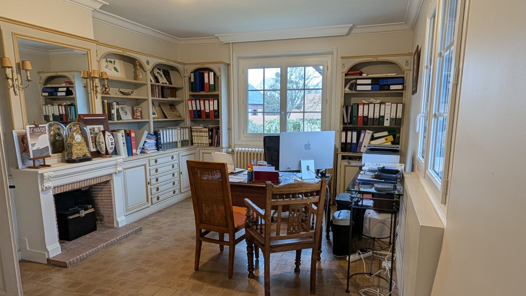 Un demi-niveau dessert un bureau avec entrée indépendante, donnant directement sur le jardin.