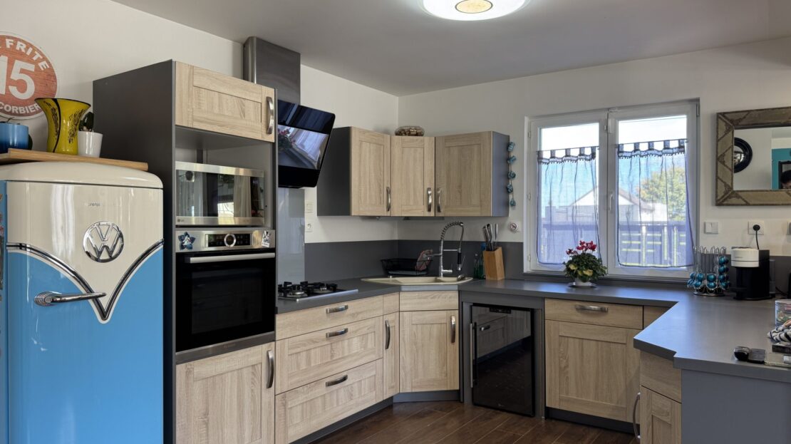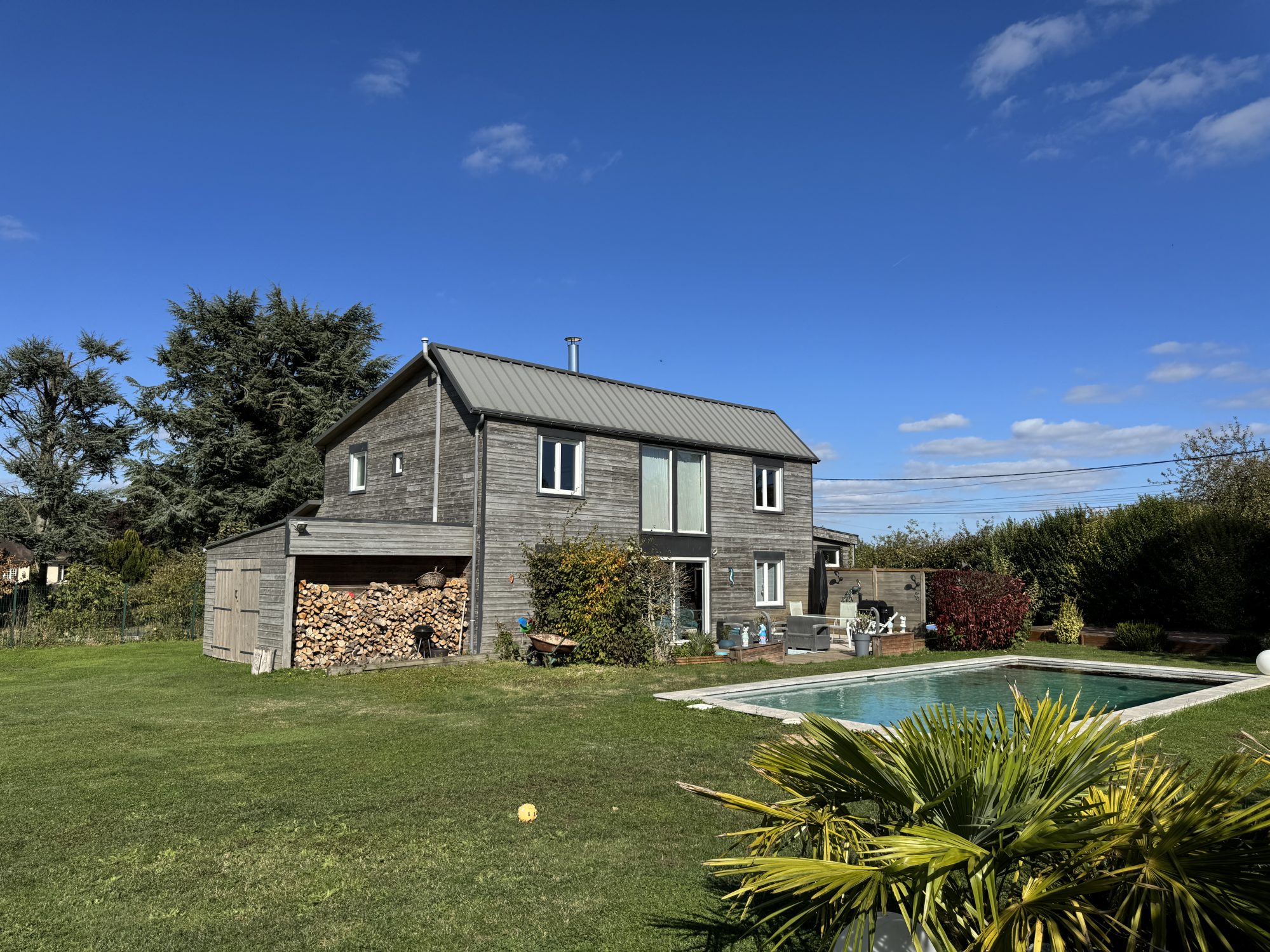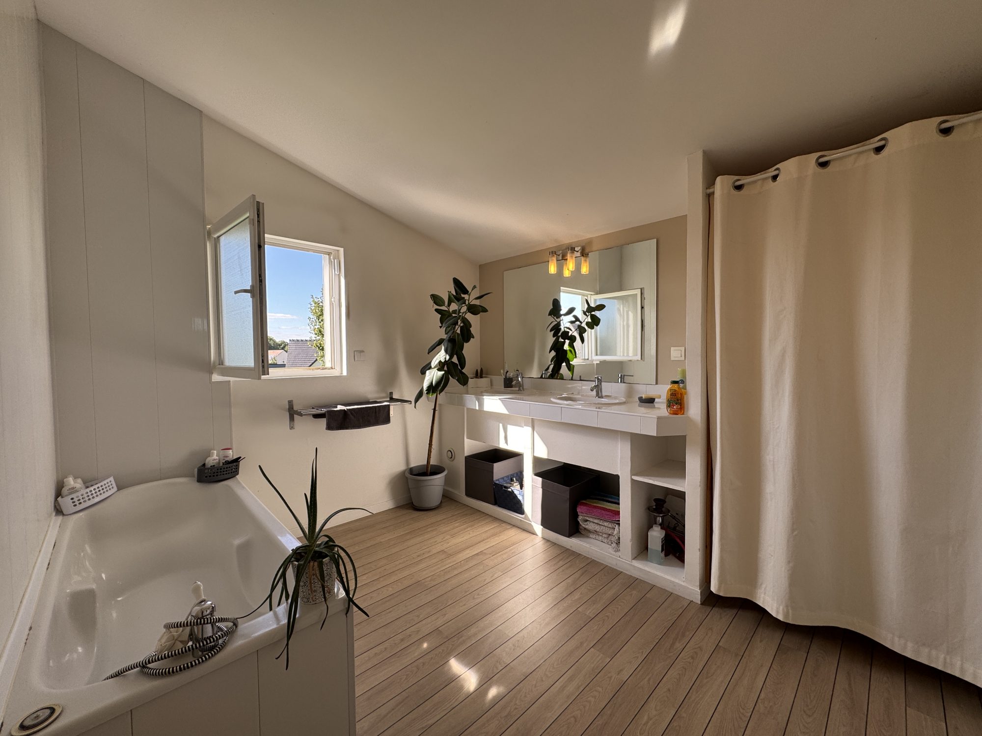 Construite en 2009, cette maison de 165m² offre toutes les prestations utiles à votre vie de famille. Grande pièce à vivre, chauffage au sol, suite parentale en rez-de-chaussée, grand pallier pour salle de jeu ou autre, piscine chauffée, garage, accès autoroute rapide…