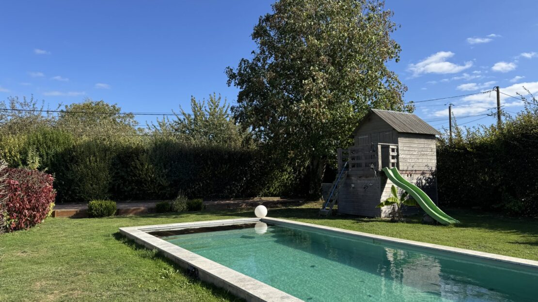 Piscine construite en 2021 (8m x 3.5m) chauffée par une pompe à chaleur. Terrain de pétanque.