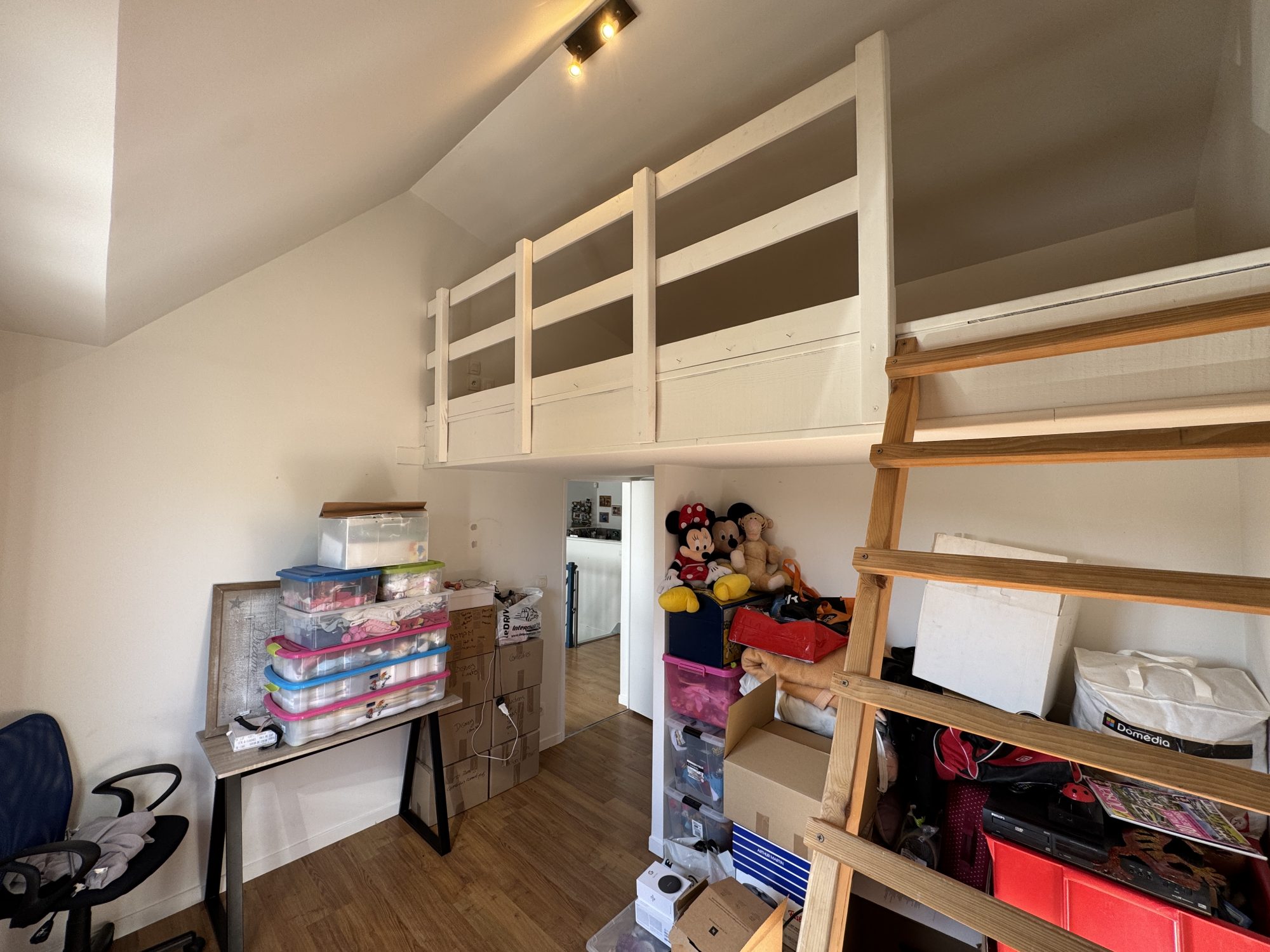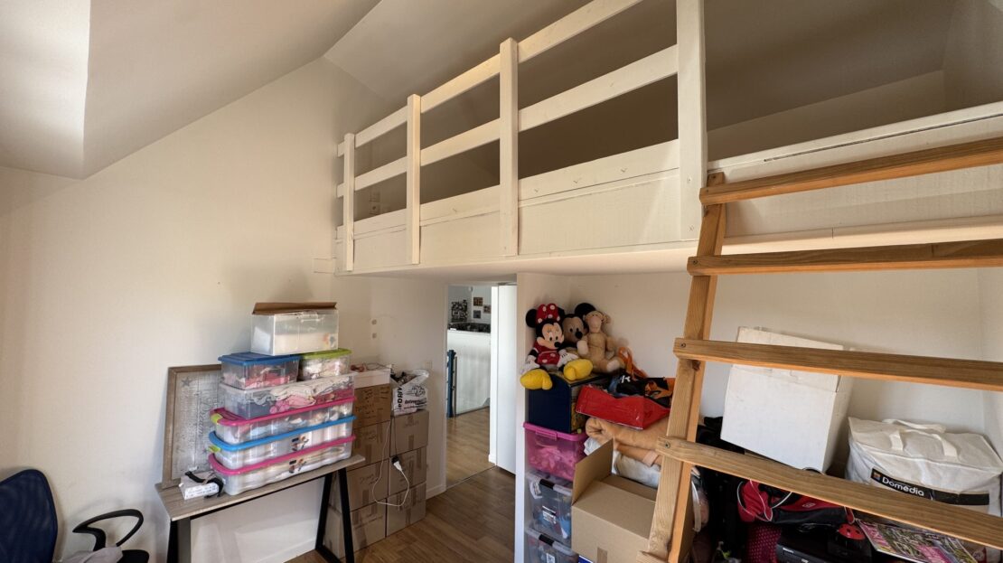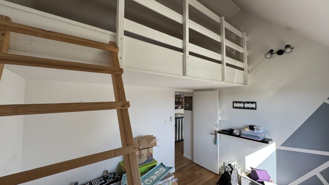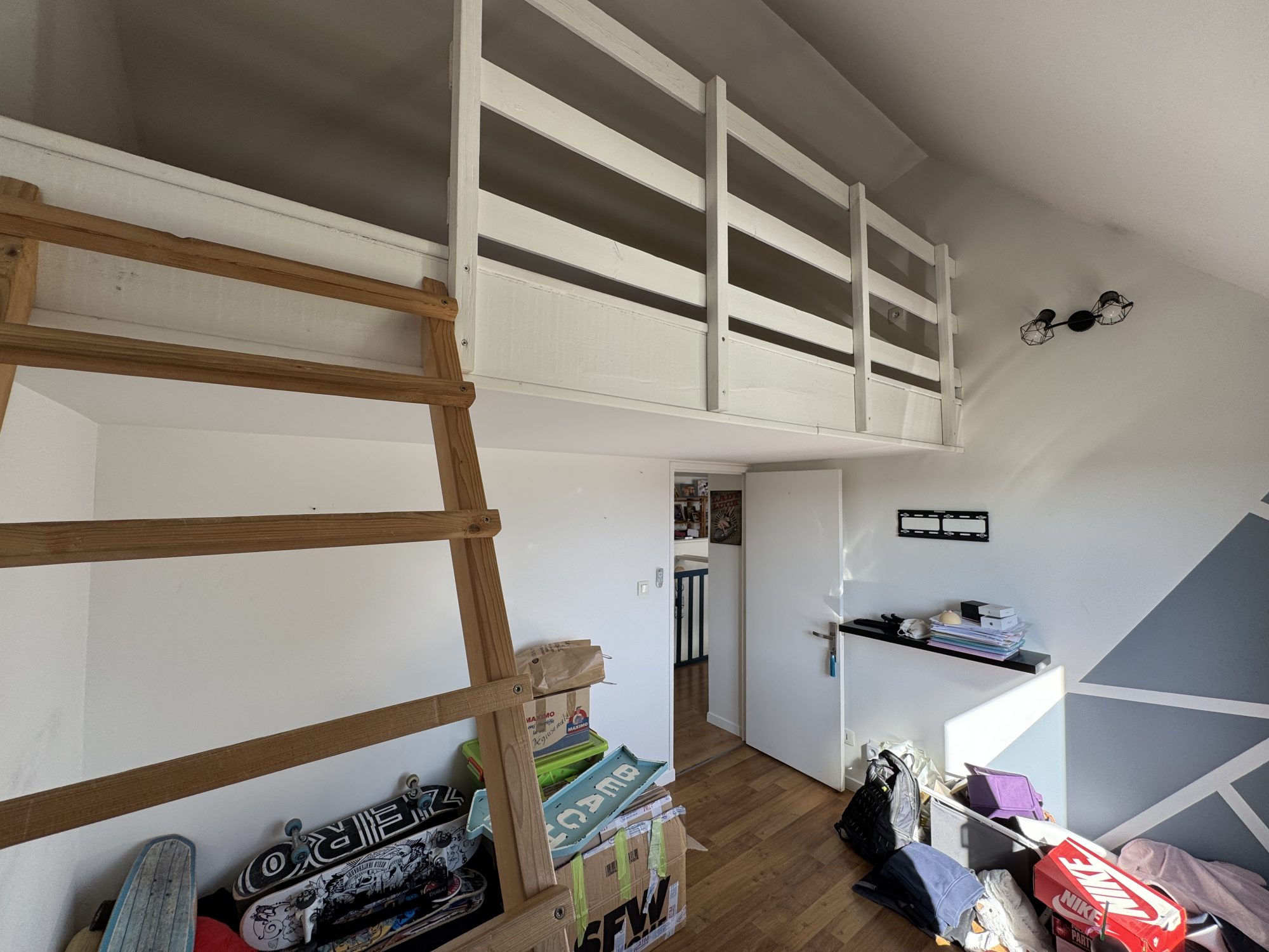 A l’étage 25m² de pallier, 3 chambres dont deux atypiques, une salle de bains et un wc indépendant.