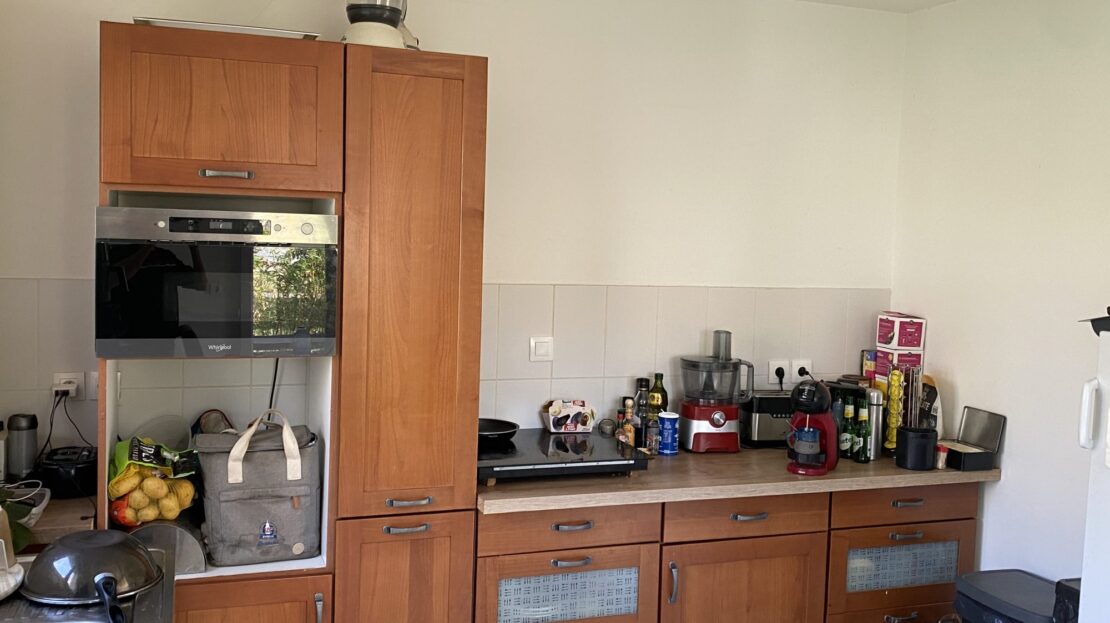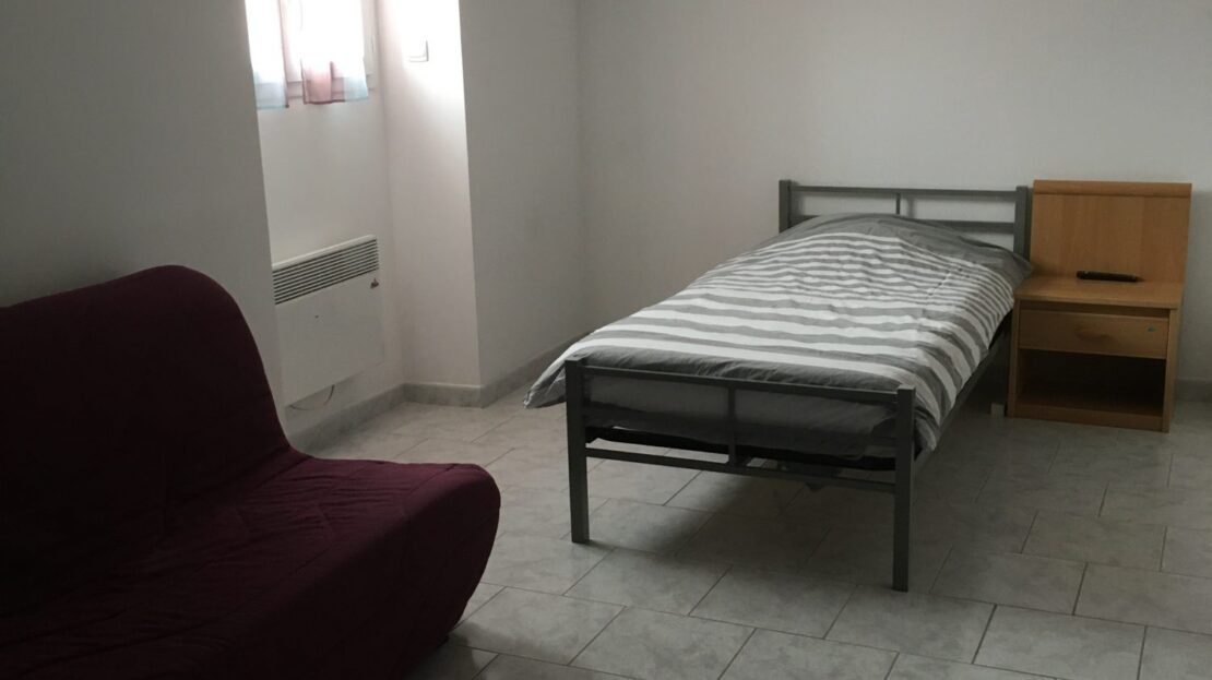 entrée dans séjour ouvert sur la cuisine, salle de douche avec wc, une chambre ou bureau