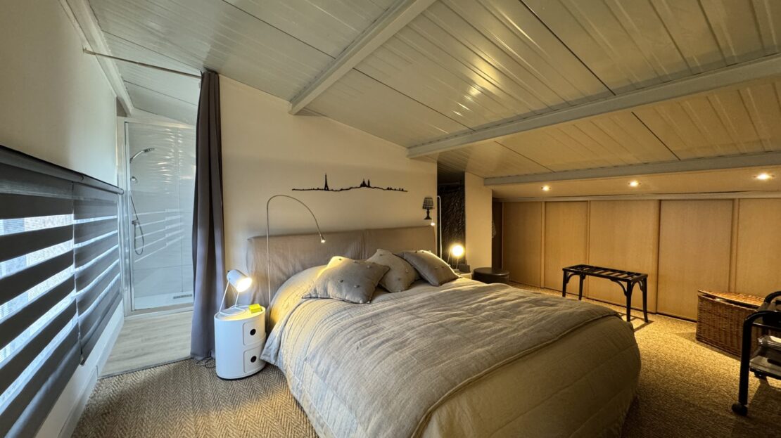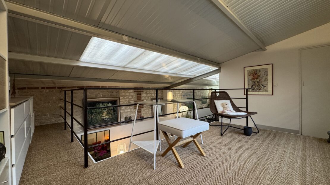 Etage : Grande pièce palière, chambre avec dressing et salle d’eau , WC.