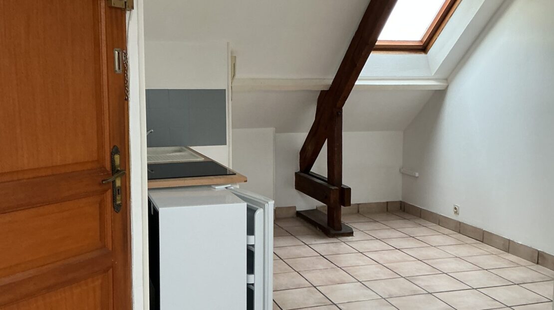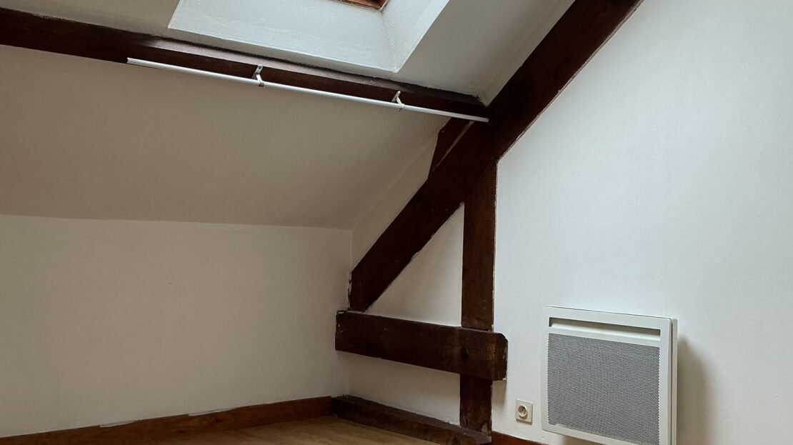LOUVIERS CENTRE VILLE, dans petite résidence proche de la place de la halle, F2 repeint situé au 3ème étage de la résidence : cuisine aménagée et équipée d’une plaque de cuisson et réfrigérateur, séjour, une chambre, salle d’eau avec wc et placards