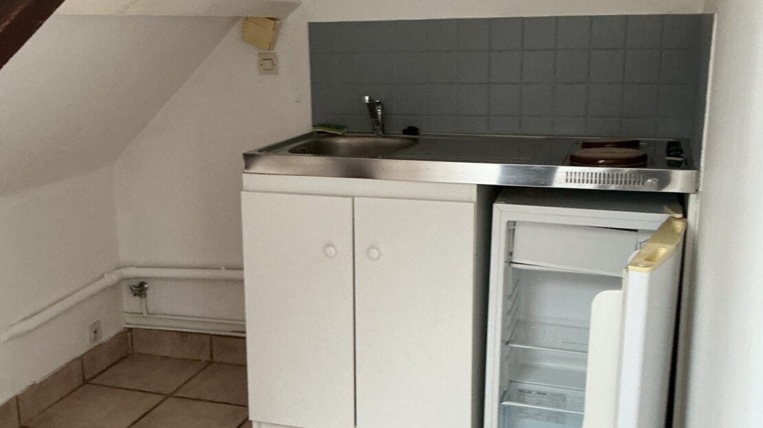 LOUVIERS CENTRE VILLE, Appartement de type f2 de 23 m² situé au 3ème étage d’une petite résidence calme : coi cuisine équipée plaque de cuisson et réfrigérateur, séjour, une chambre, salle de douche avec wc.