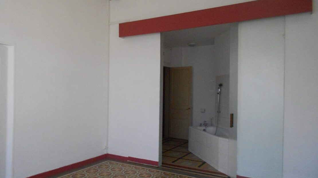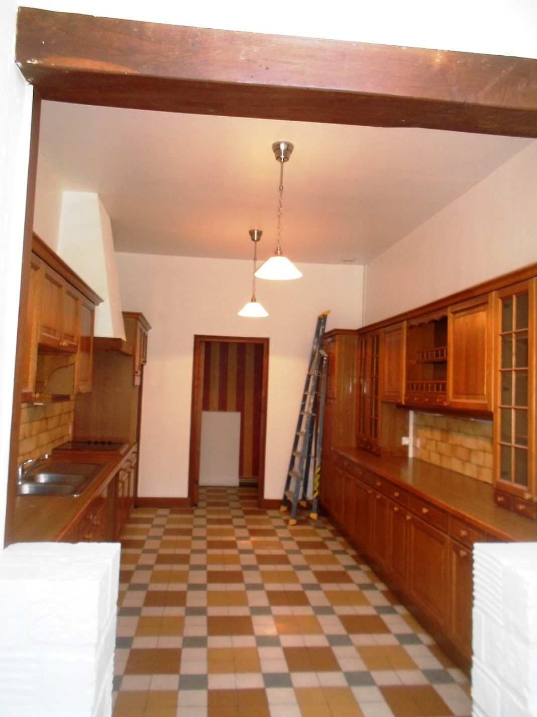 entrée, grande cuisine aménagée, salon, salle de douche avec wc, une grande chambre