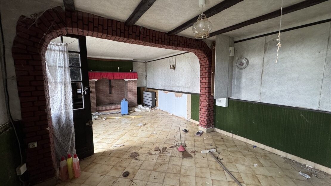 Cette maison ancienne de plain-pied, offrant un beau potentiel de rénovation, se compose actuellement d’une entrée donnant sur un séjour / salon, d’une cuisine, d’un dégagement, de trois chambres, d’une salle de douche et d’un WC indépendant.