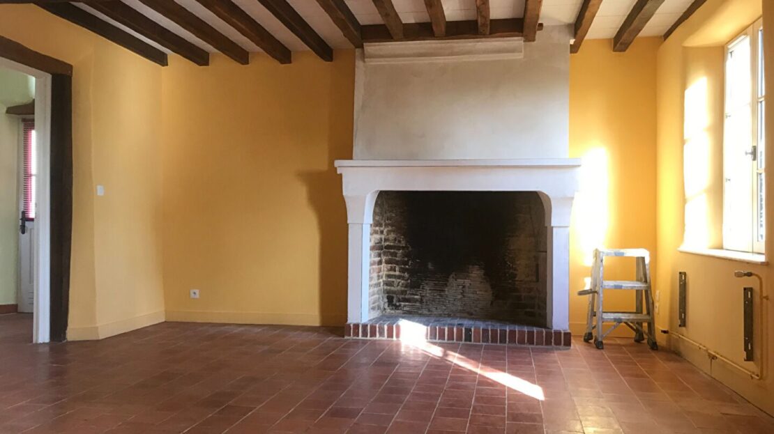 entrée, une grande chambre de 25 m², séjour avec cheminée ouverte (conduit non tubé), une grande cuisine avec la chaudière gaz de ville neuve(début 2025), wc, salle de bains.