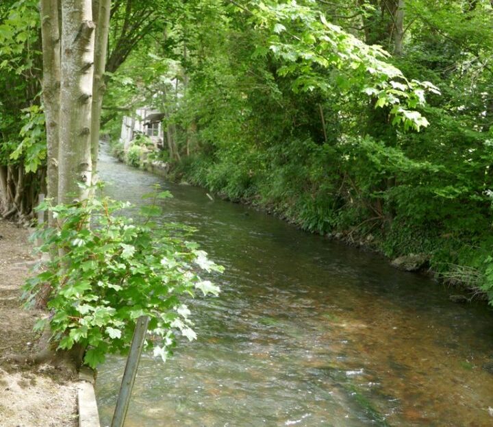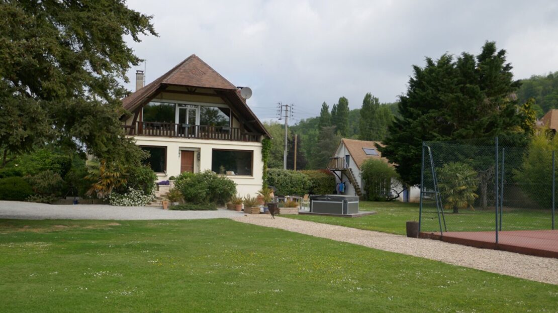 L’ensemble implanté sur un terrain paysagé avec bord de rivière.