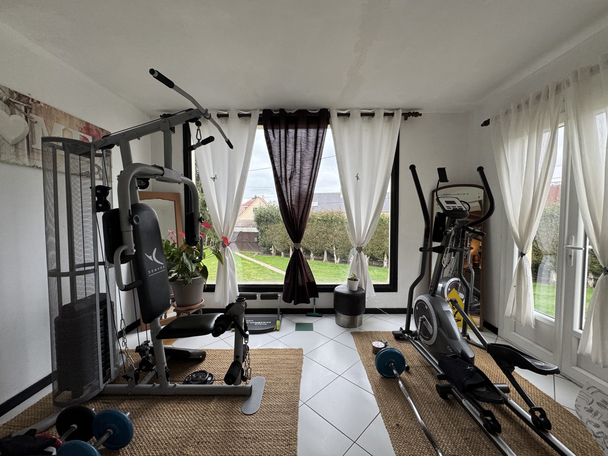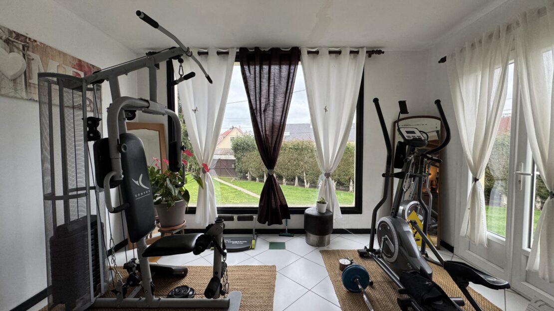 Elle se compose, au rez-de-chaussée, d’une entrée avec placards, d’une cuisine aménagée, d’une pièce à vivre de 60m² lumineuse et chaleureuse, accès à la terrasse plein SUD, d’un bureau, d’une salle de sport, d’une salle d’eau et d’un WC indépendant.