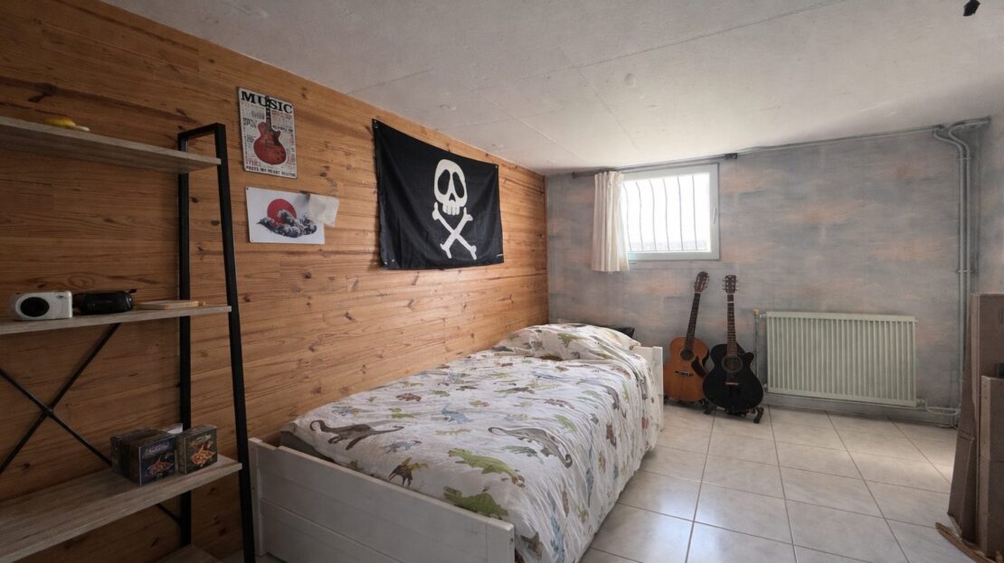 Au sous-sol une lingerie, une pièce à usage de chambre (avec fenêtre et radiateur), espace atelier.