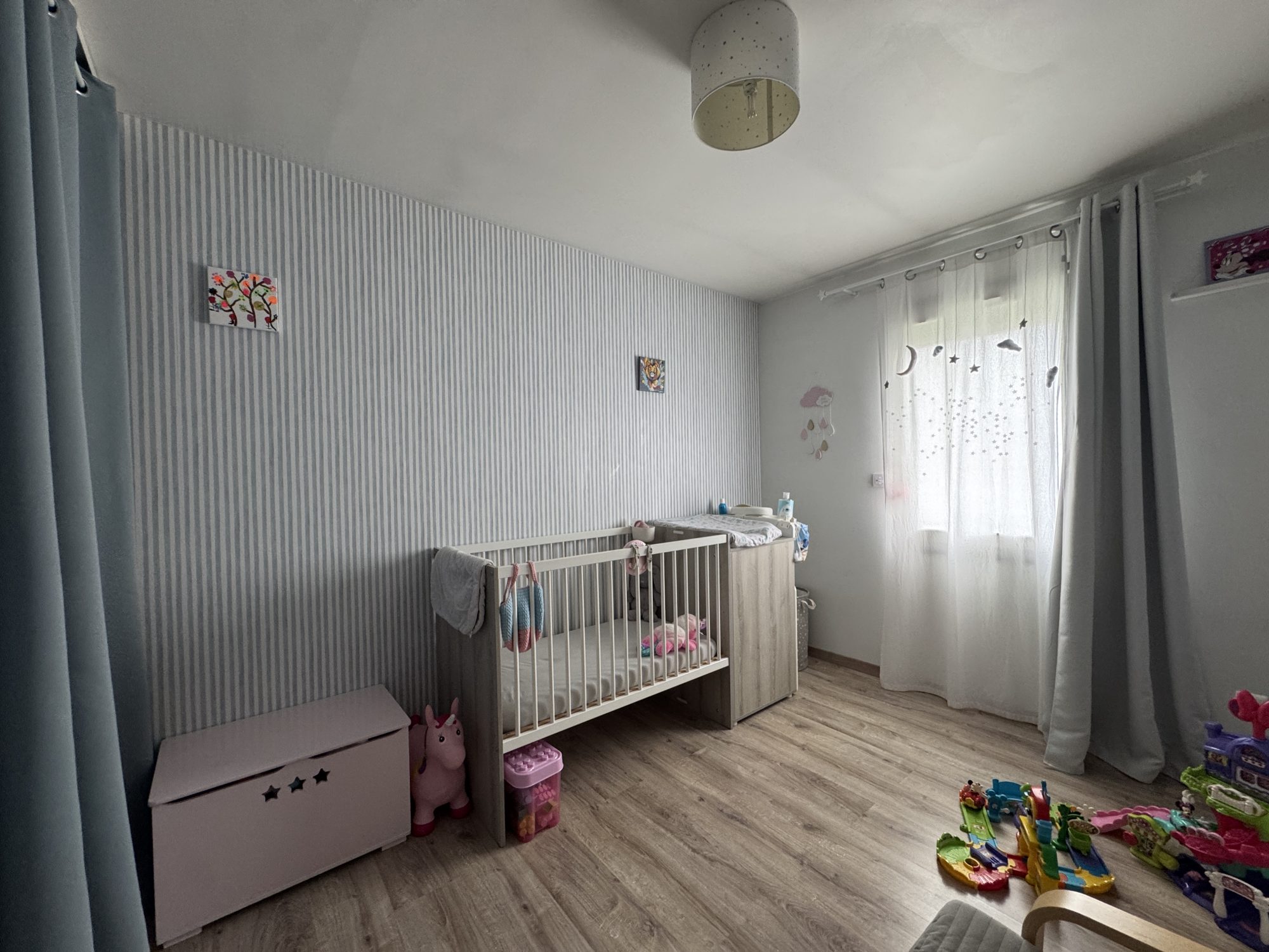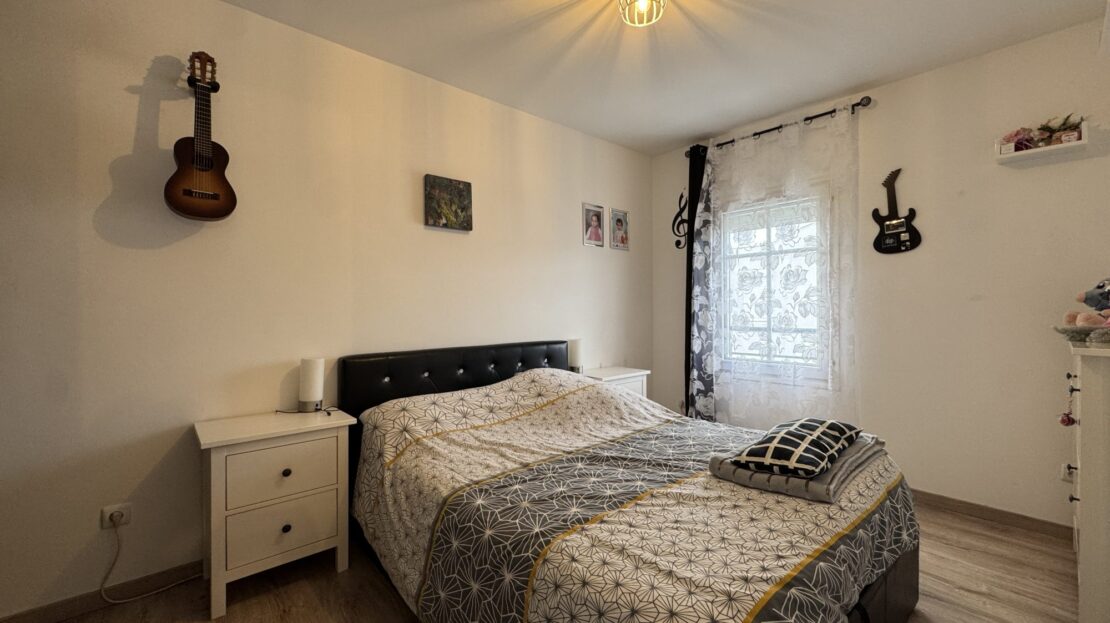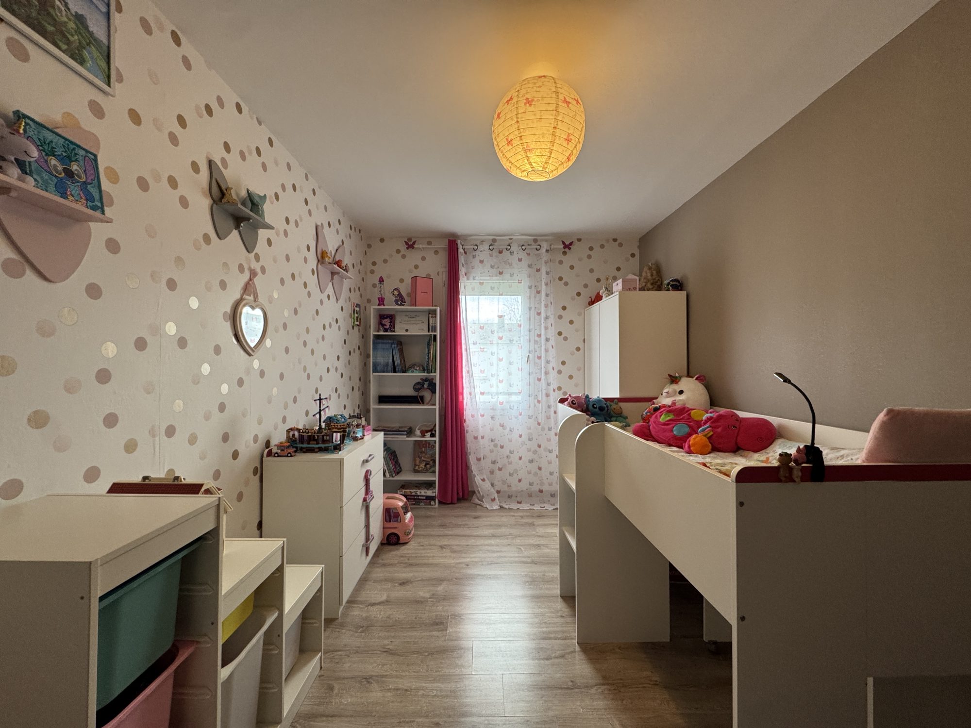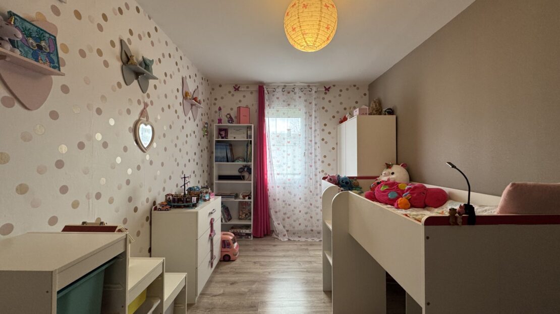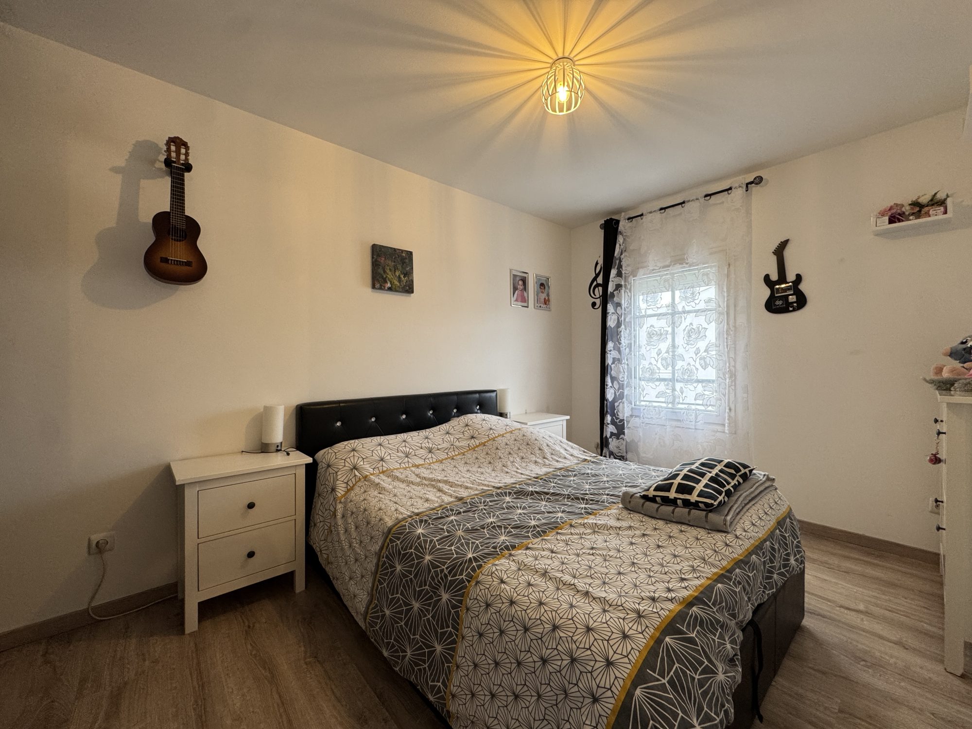 À l’étage un palier desservant 3 chambres avec dressing, une salle de bains avec WC.