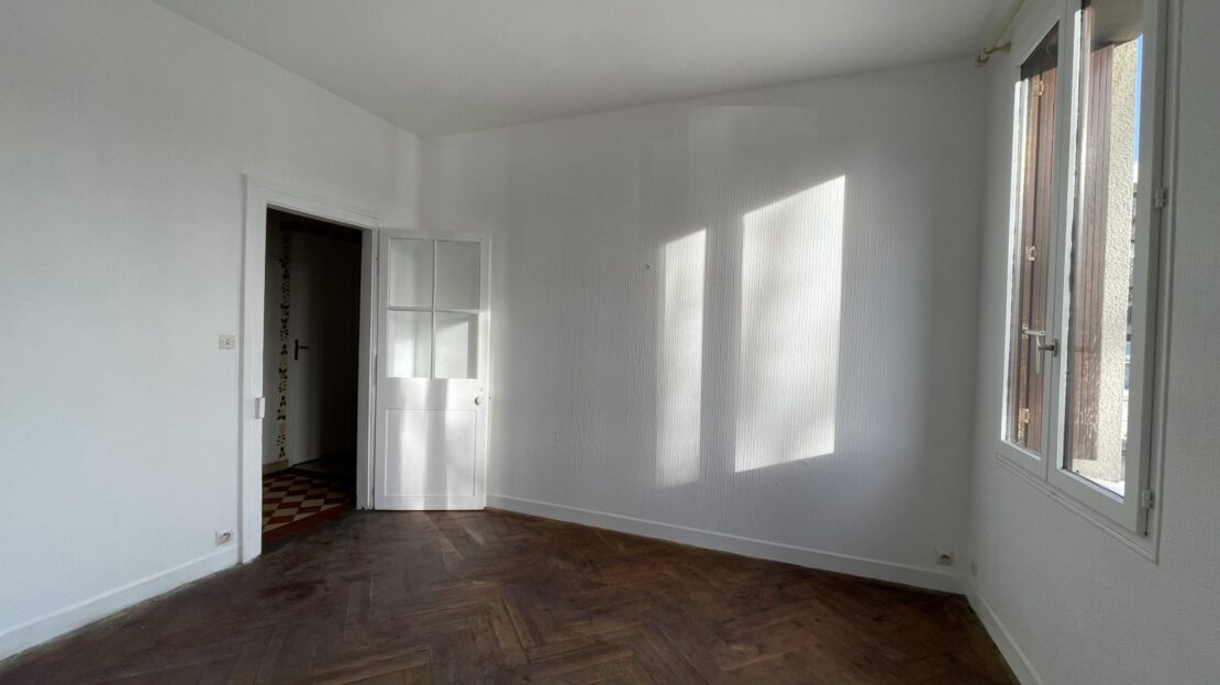 Au premier étage, un palier desservant 2 chambres ainsi qu’une salle de bains avec WC.