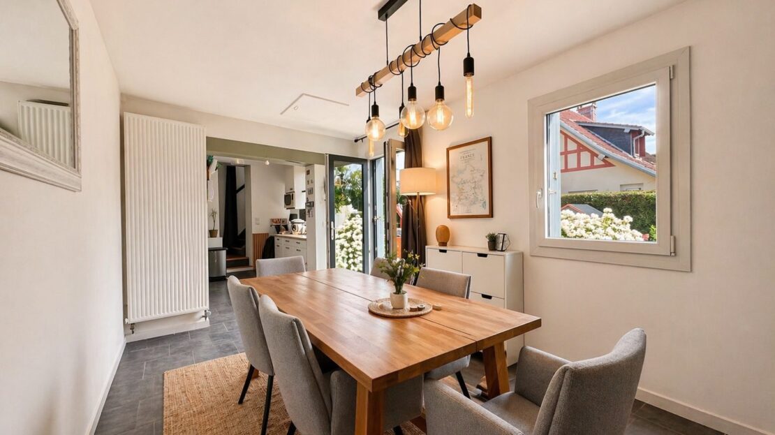 Située dans un environnement calme et recherché, cette maison élevée sur plusieurs niveaux offre une atmosphère chaleureuse et cocooning.