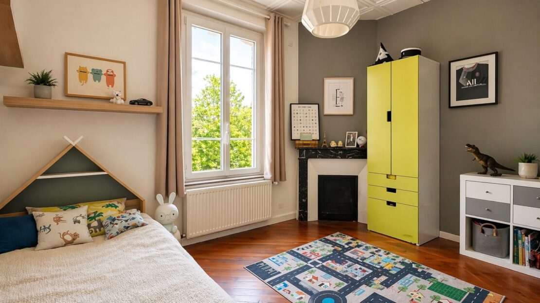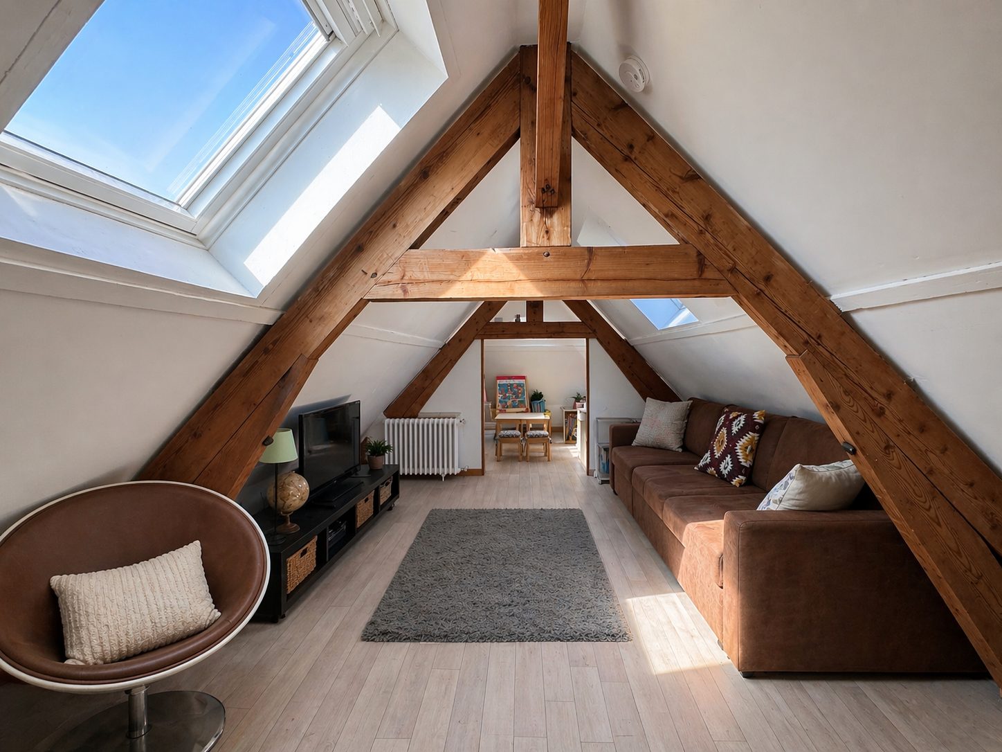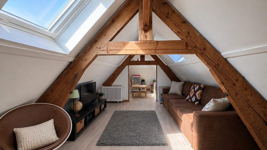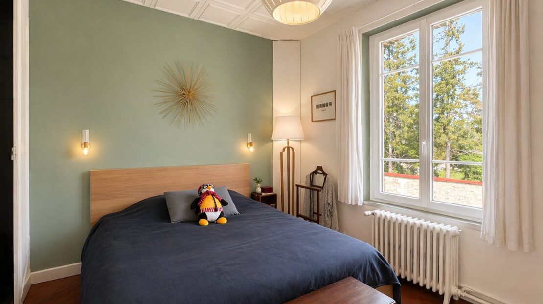 Une troisième chambre mansardée, idéale pour un espace nuit, un bureau ou une chambre d’enfant.