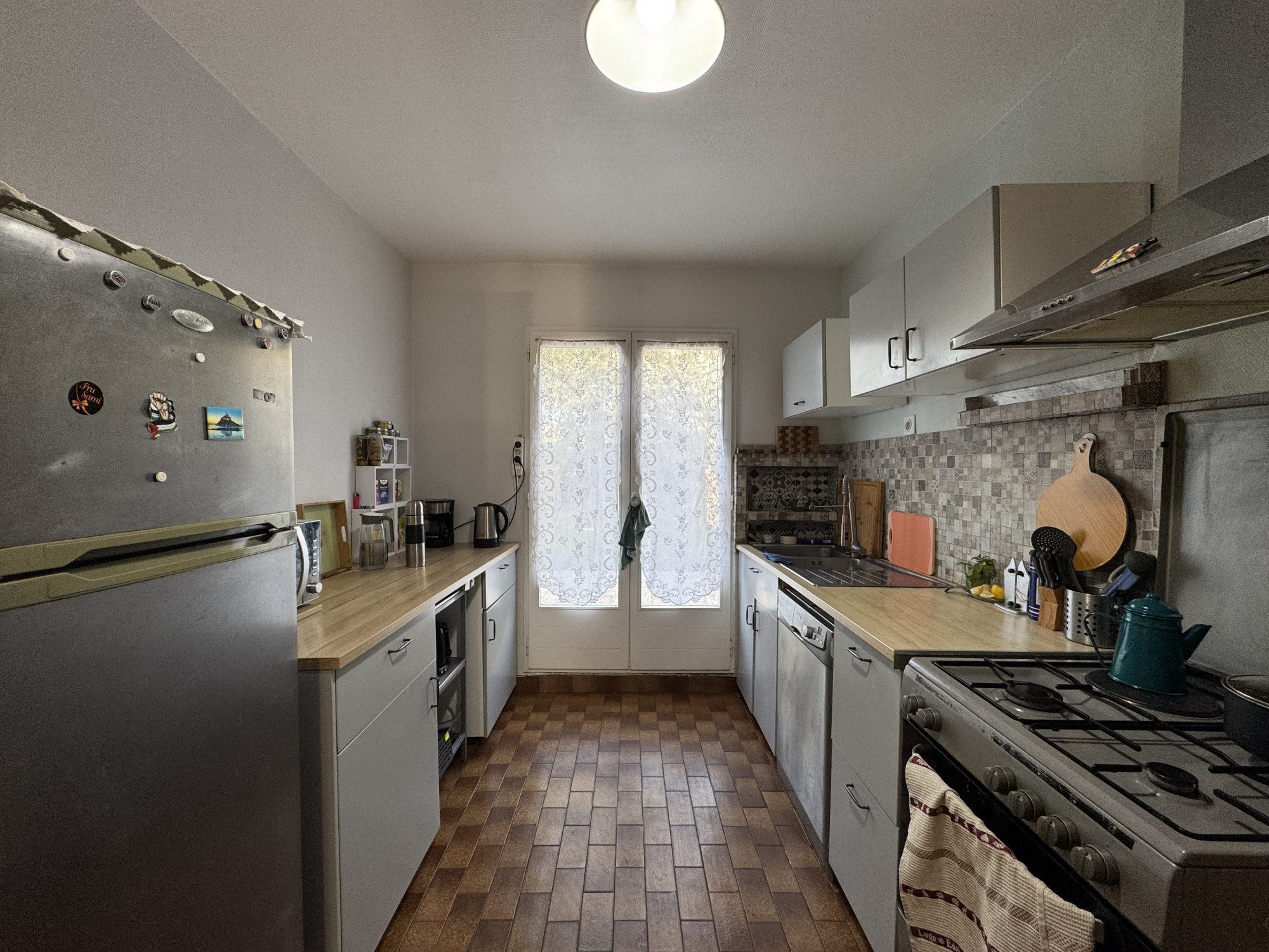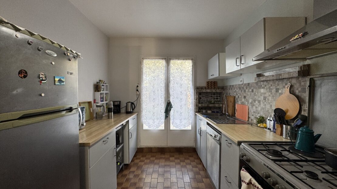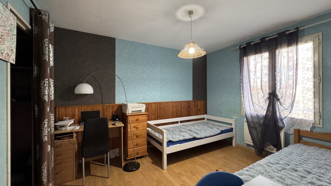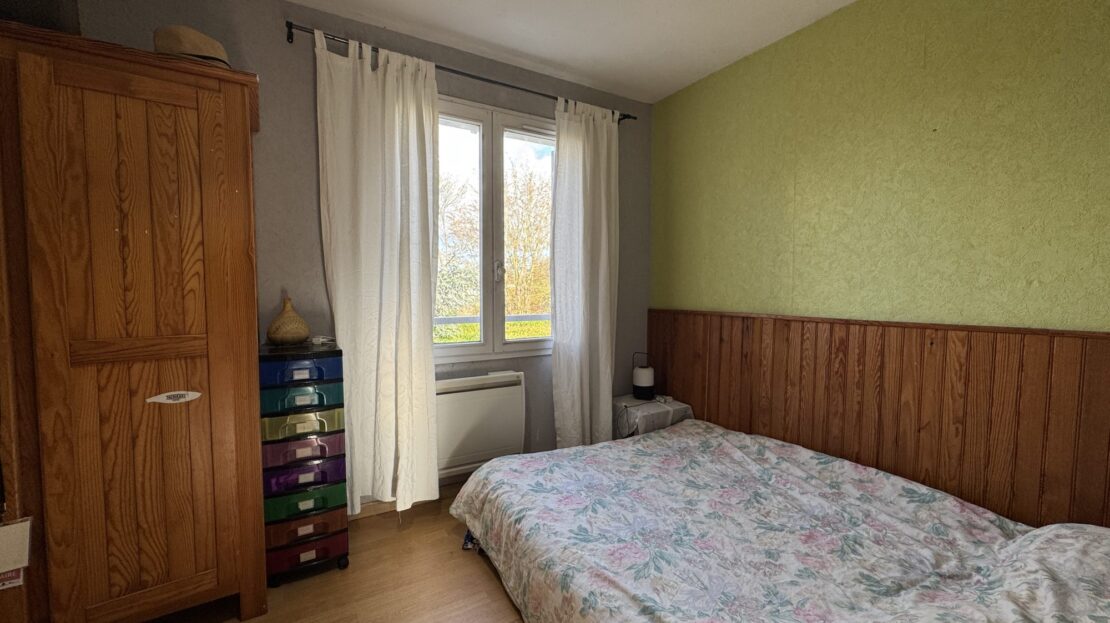 La maison se compose d’une entrée avec rangement, d’une belle pièce à vivre de 32 m² avec lumière traversante et cheminée avec insert, d’une cuisine avec cellier et accès au garage, ainsi que de WC indépendant.À l’étage, le couloir dessert trois chambres, une salle de bains et une salle d’eau avec WC.