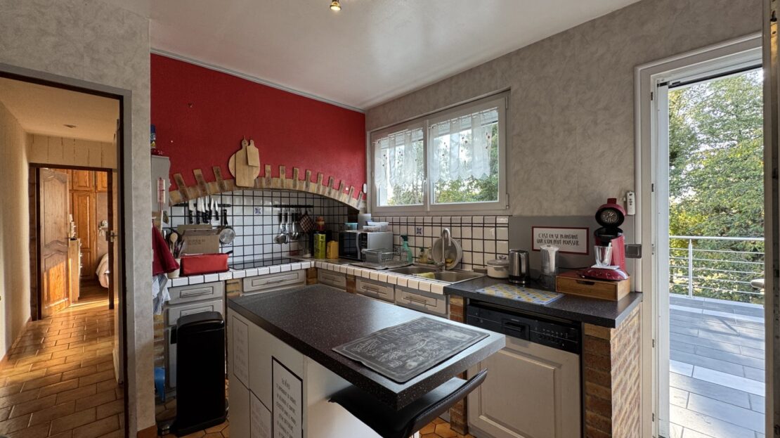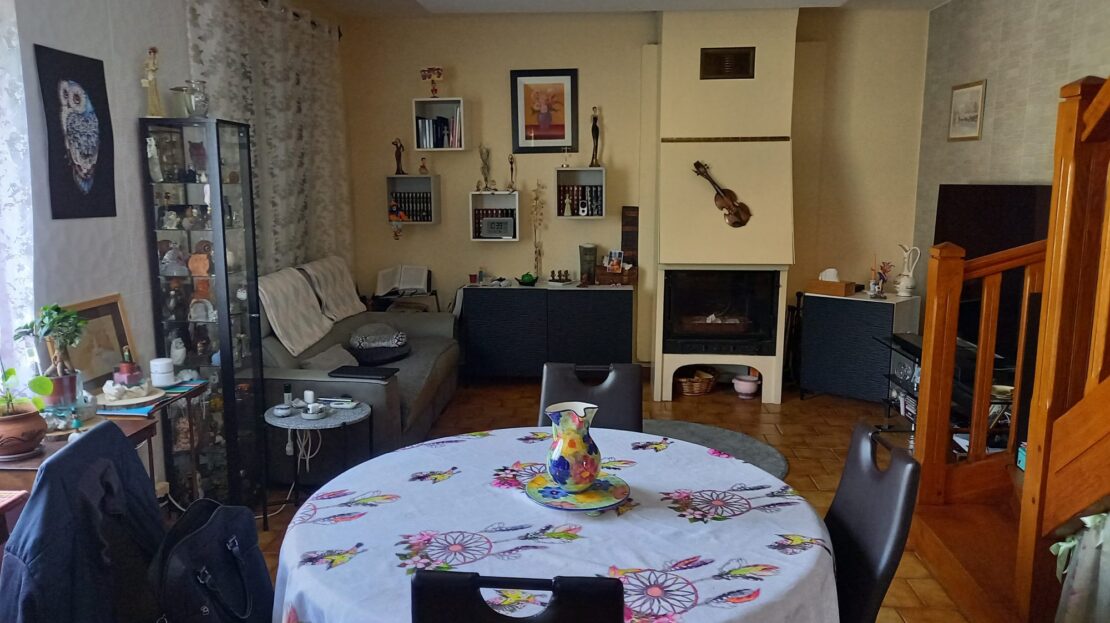 Au rez-de-chaussée : séjour, salon avec cheminée insert, cuisine aménagé et équipée, couloir desservant chambre et salle de bains avec WC