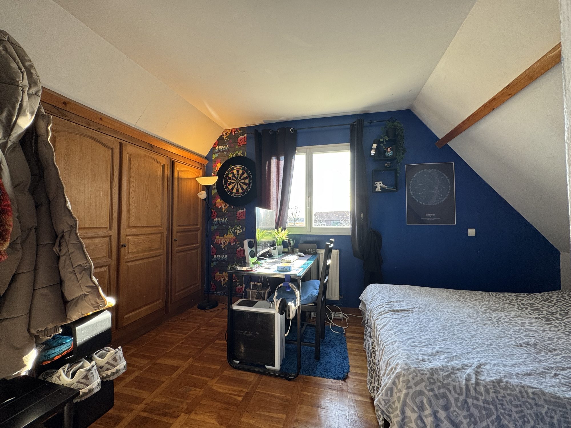 A l’étage, une très grande chambre avec dressing, trois autres chambres, et une salle de bains avec wc.