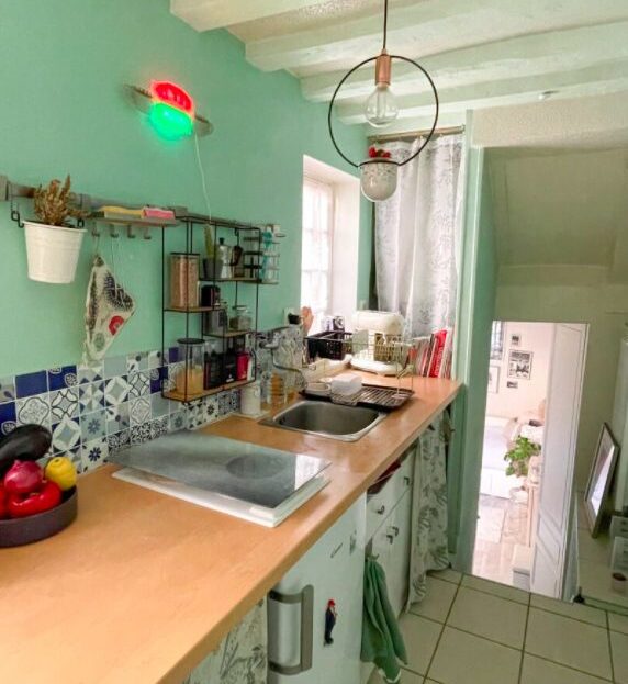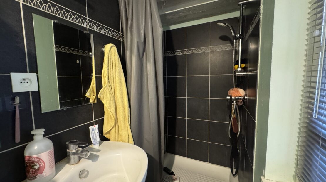 L’appartement se décompose comme suit : une pièce principale, un coin cuisine et une salle d’eau avec WC.