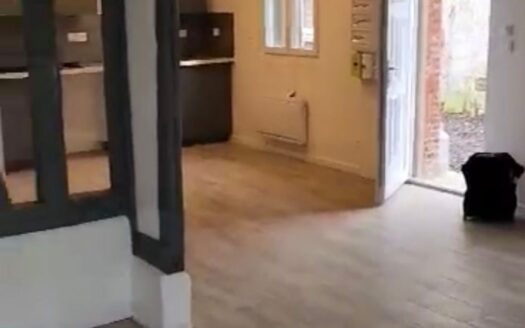 POSES, maison ancienne rénovée totalement en 2023 : entrée dans séjour ouvert sur cuisine aménagée, cellier, wc et salle